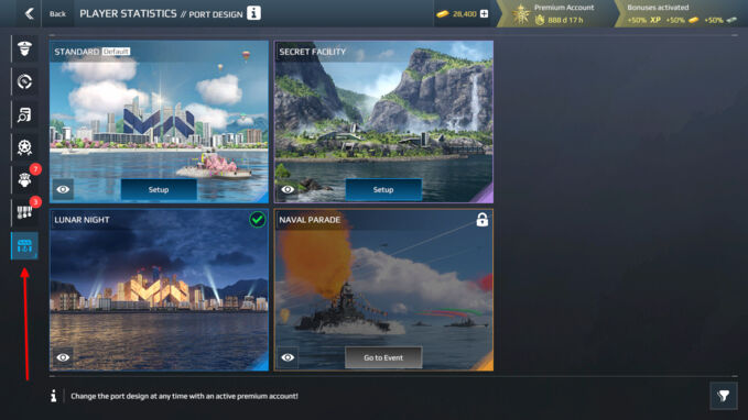 The game allows you to change your port — switching ports completely changes the port’s appearance.