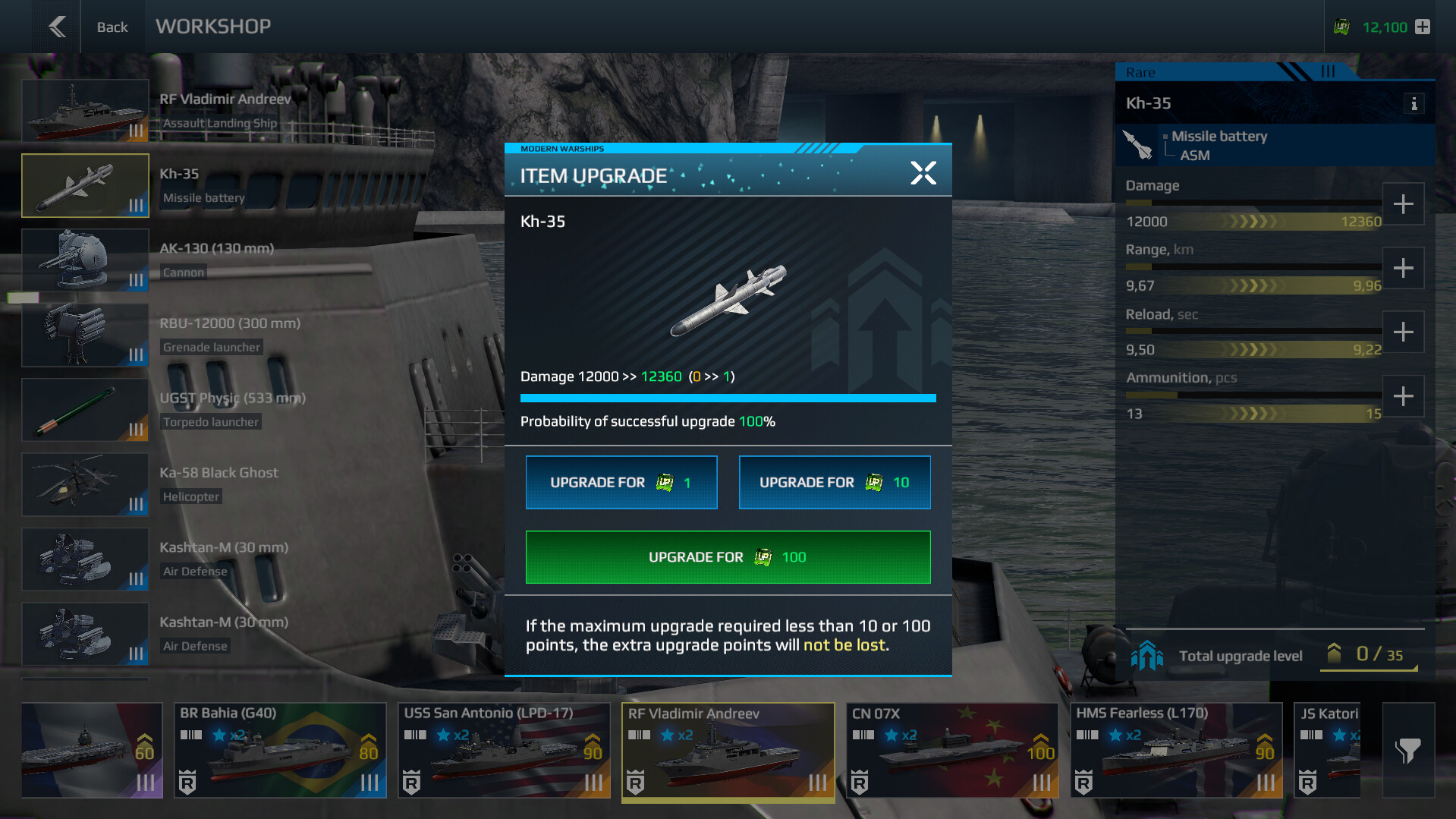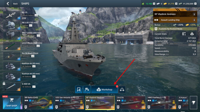 - Suggested upgrade sequence: First — ship attributes Next — artillery, missile systems, and torpedoes Finally — defensive modules