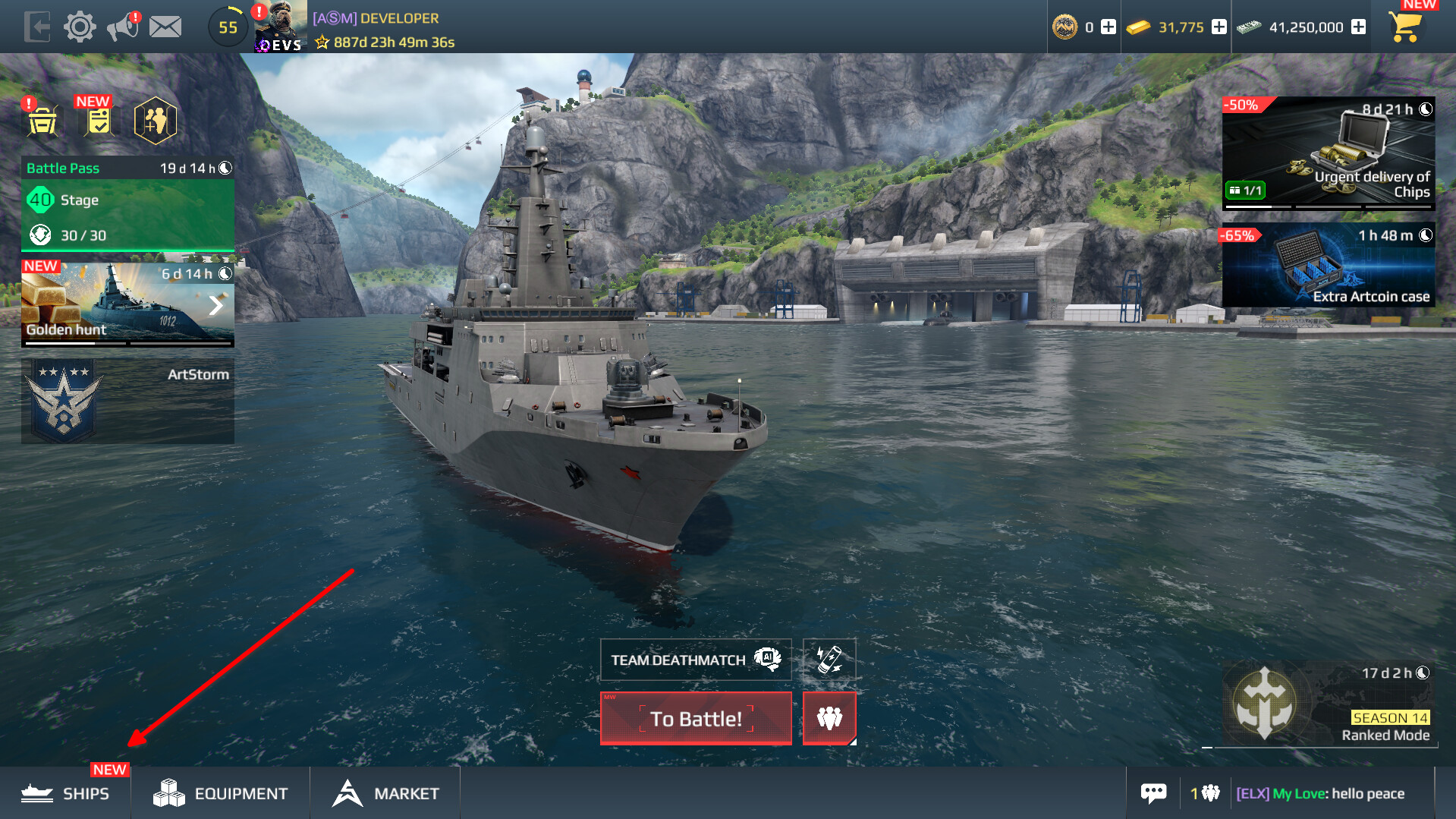 - Go to the Ships menu.