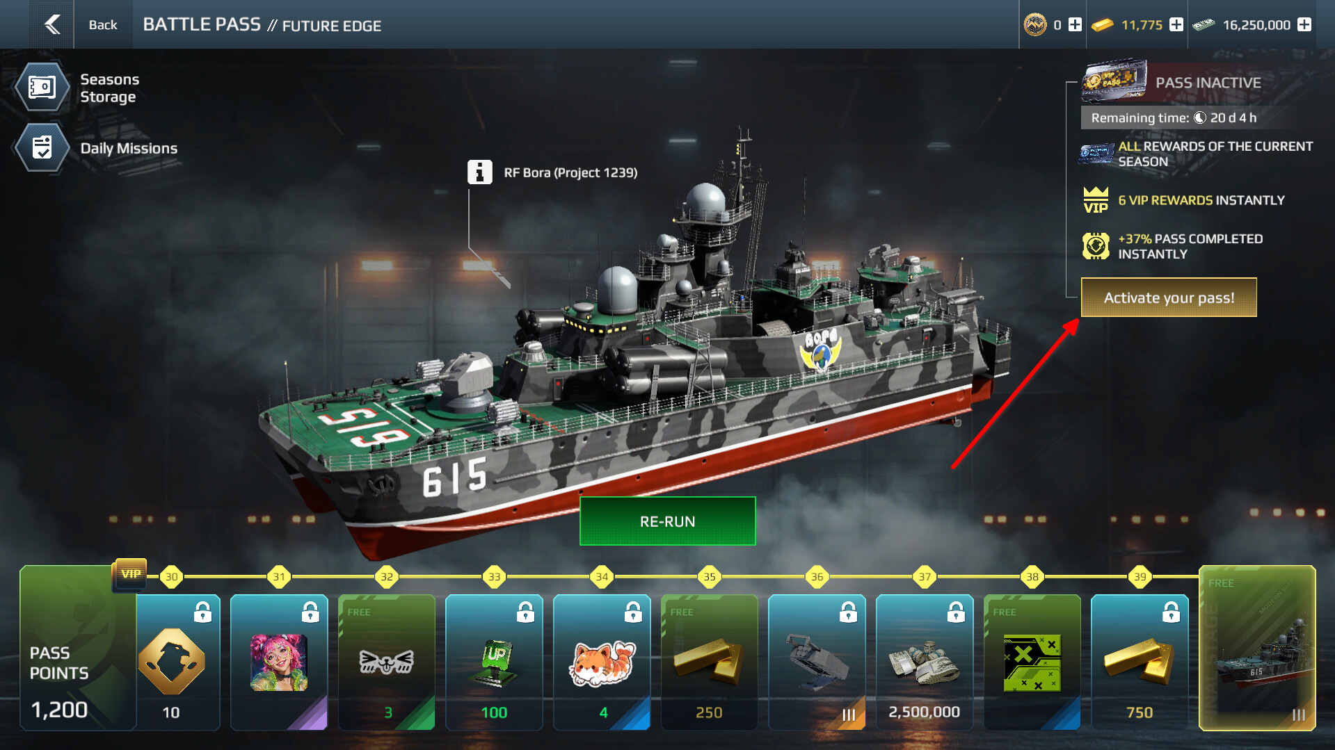 Чтобы активировать VIP‑ или премиум‑боевой пропуск, его необходимо сначала приобрести: