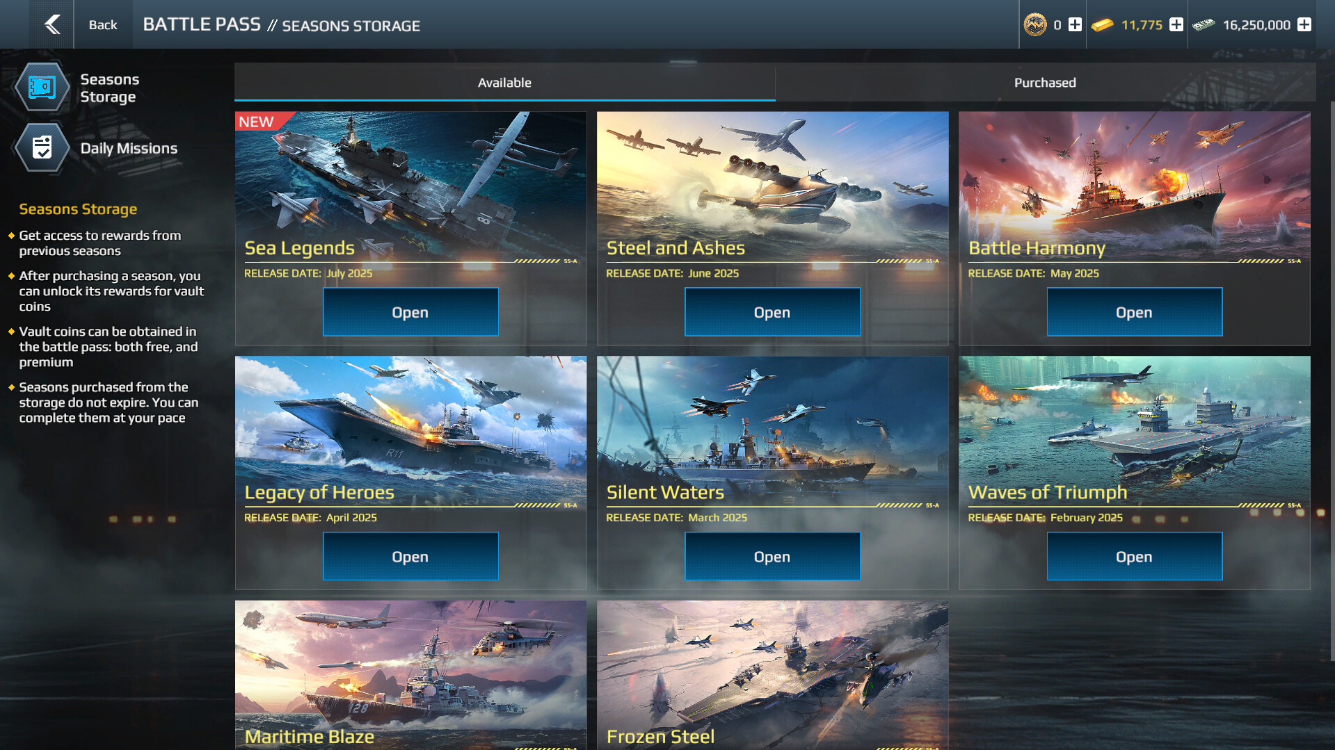 Хранилища позволяют получить предметы и корабли из прошлых сезонов за уникальную валюту — монеты хранилища.