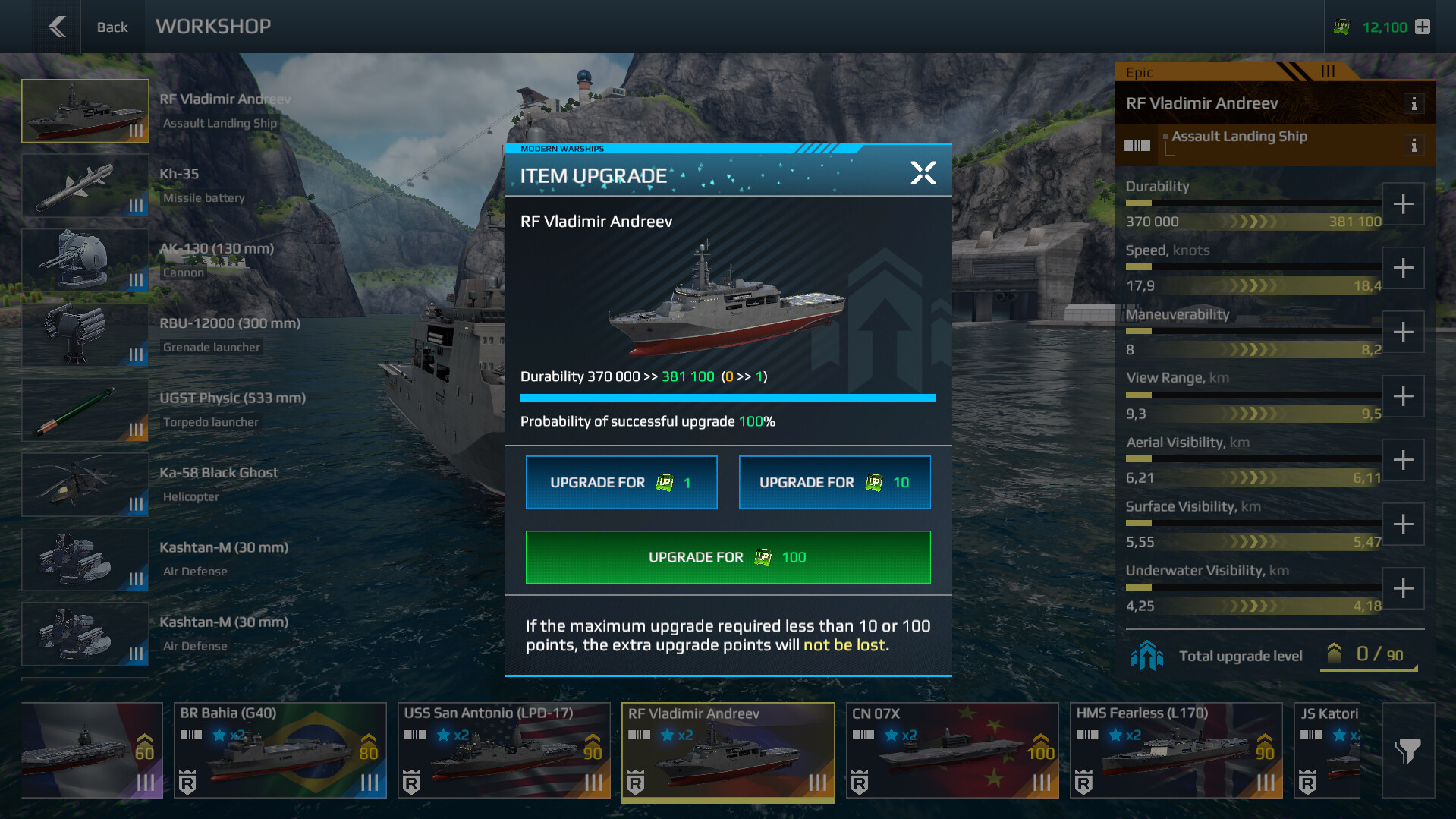 - Равномерное распределение улучшений между кораблём и вооружением, обеспечивающее согласованное повышение боевой эффективности.