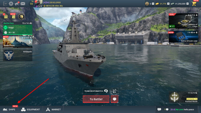- Перейти в меню «Корабли».